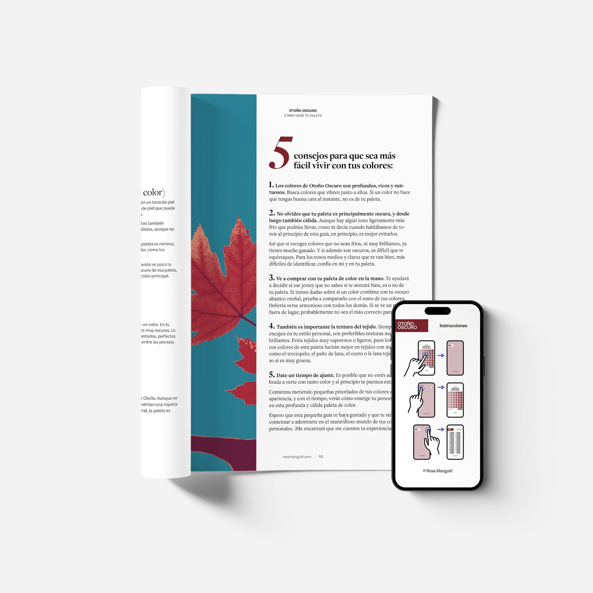 Tu Guía Personal en la que te explicamos por qué tus colores son los tuyos y no otros, lo que te servirá para aprender a identificarlos, más allá de estos primeros 42; qué colores evitar porque no te favorecen; qué tejidos te sientan mejor…