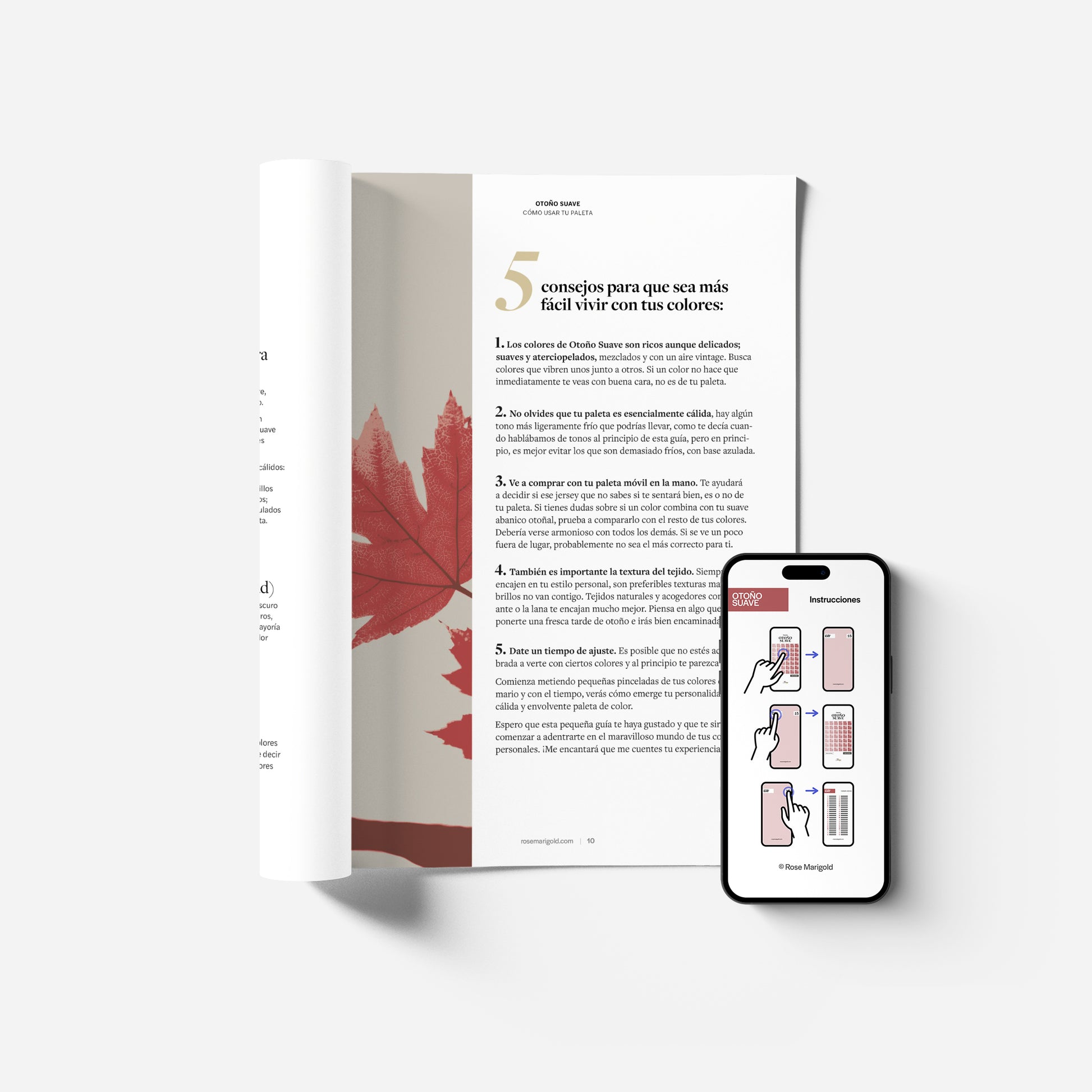Tu Guía Personal en la que te explicamos por qué tus colores son los tuyos y no otros, lo que te servirá para aprender a identificarlos, más allá de estos primeros 42; qué colores evitar porque no te favorecen; qué tejidos te sientan mejor…