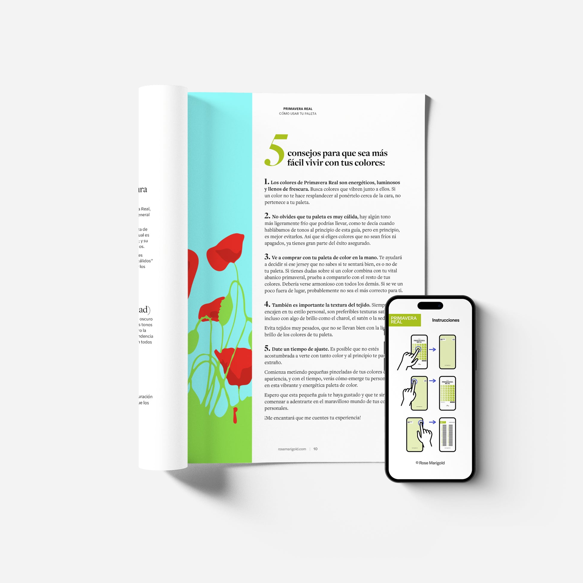Tu Guía Personal en la que te explicamos por qué tus colores son los tuyos y no otros, lo que te servirá para aprender a identificarlos, más allá de estos primeros 42; qué colores evitar porque no te favorecen; qué tejidos te sientan mejor…