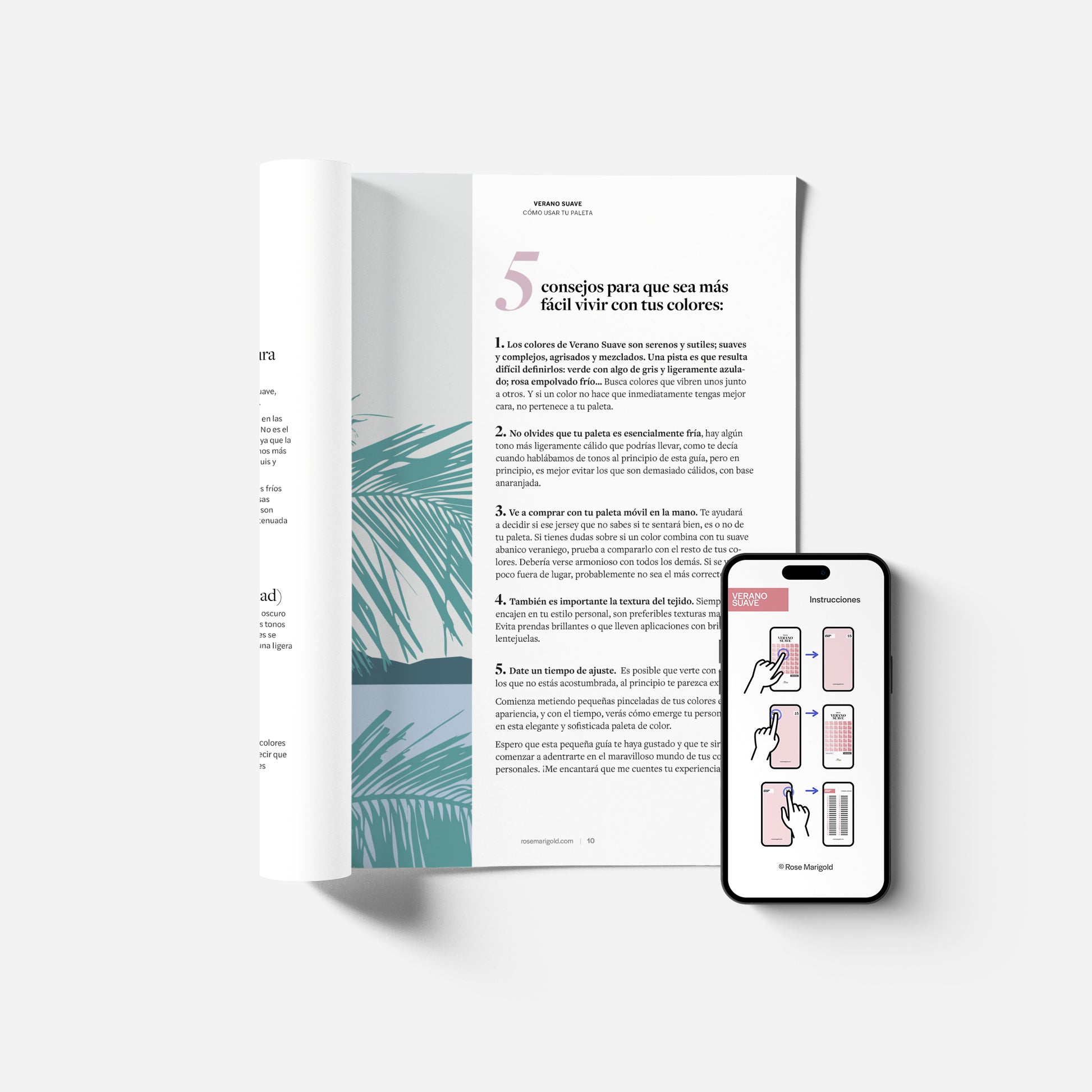Tu Guía Personal en la que te explicamos por qué tus colores son los tuyos y no otros, lo que te servirá para aprender a identificarlos, más allá de estos primeros 42; qué colores evitar porque no te favorecen; qué tejidos te sientan mejor…
